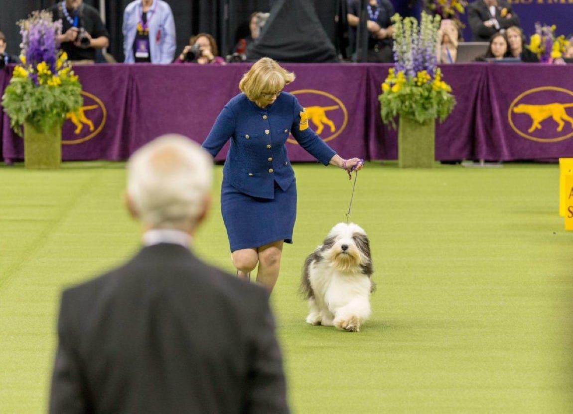 I also think there is a human factor involved, By that I mean I see a lot of exhibitors who are continually pulling back on their dogs because they can’t keep up with them. We also see those who believe moving their dog means to see how fast you can run. Neither of these exhibitors allow their dog to move properly. To a great extent, I think we train our dogs to move with us. Very experienced dogs know they will have to turn at the end of the ring, and start doing so early. This also hides true movement.